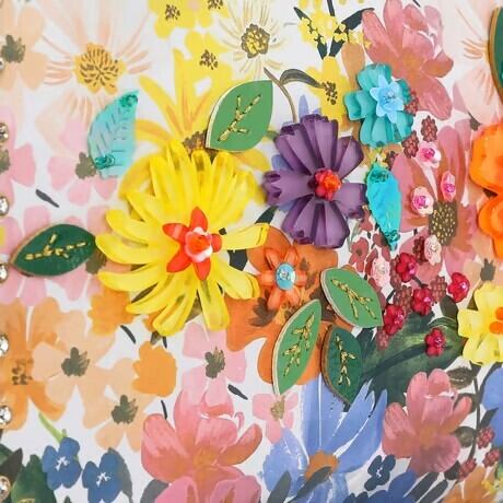 ・前面は樹脂の花、スパンコール、ビーズ、アップリケで装飾されています