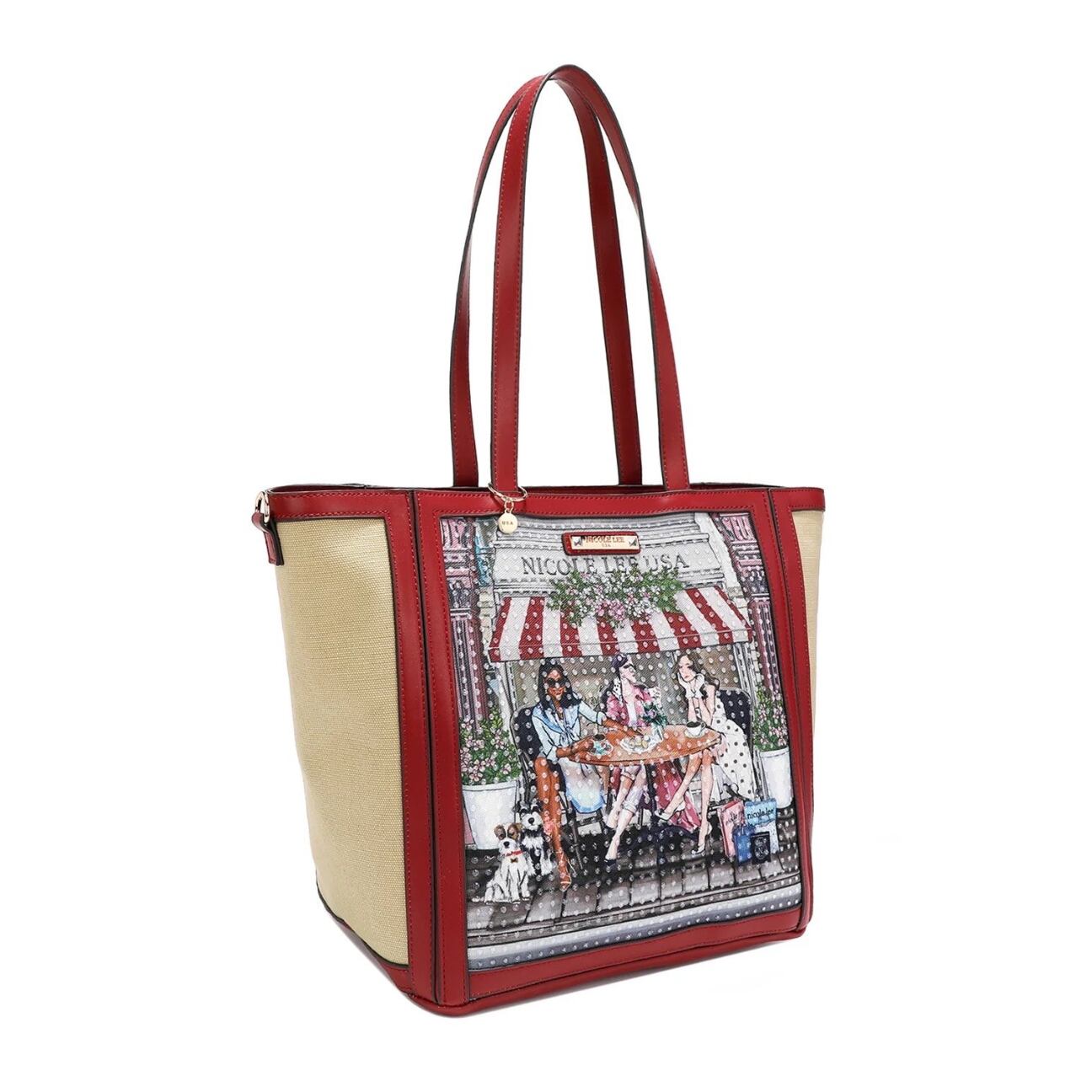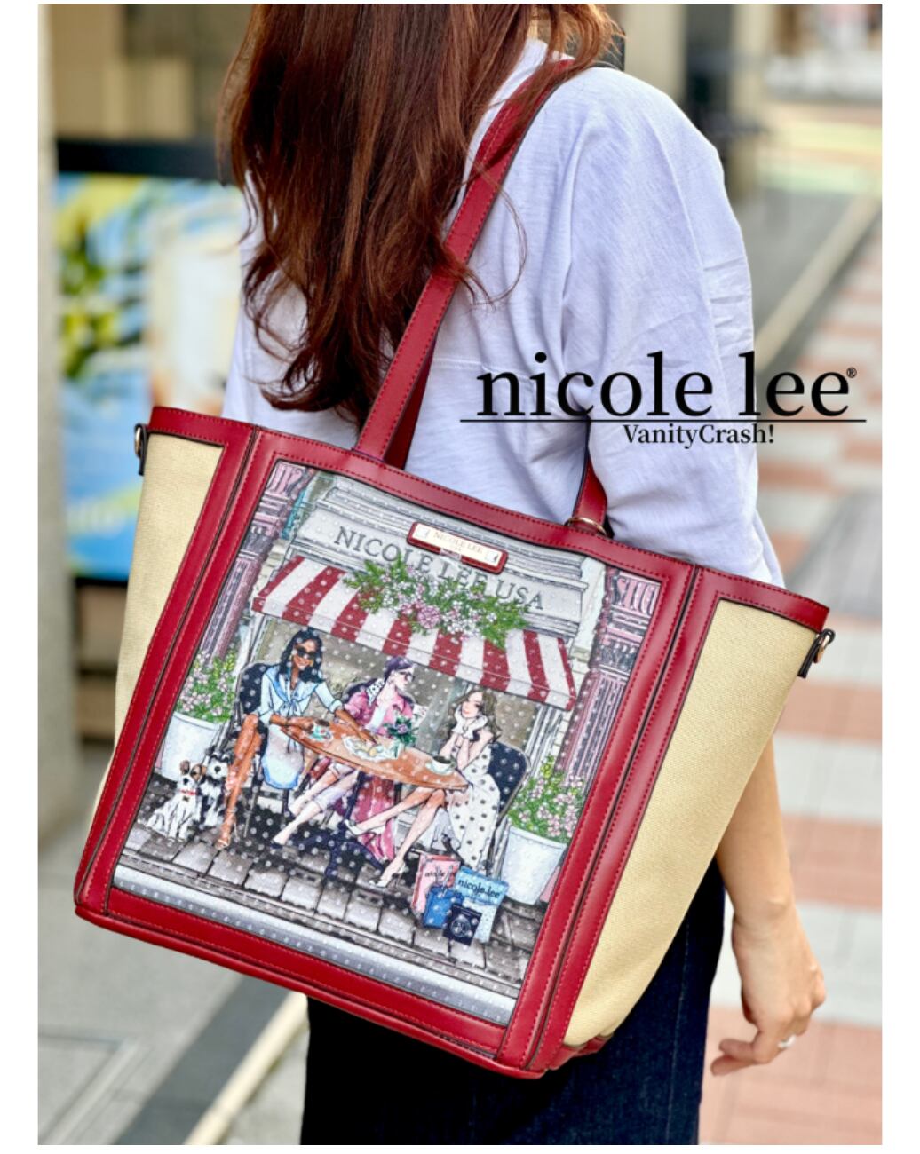 バッグ内側にボトルホルダーを備え、ペットボトルや折り畳み傘などの収納にも便利です。持ち手に合わせた赤いロゴ入りショルダーベルトが特別感を演出します。